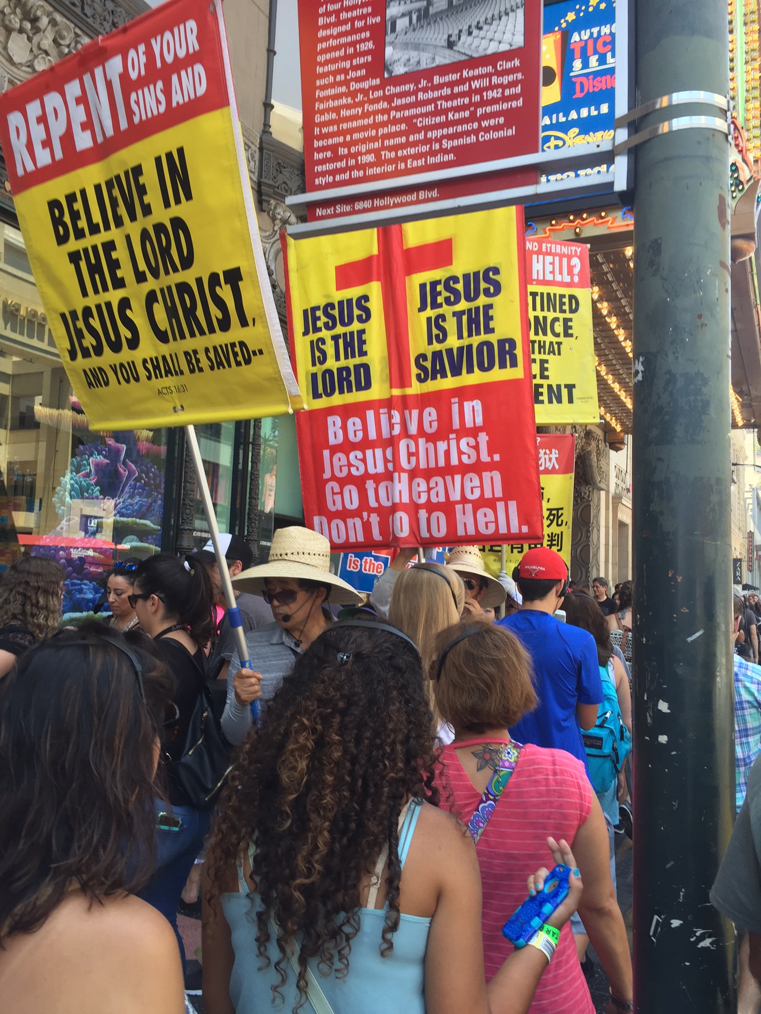 Yesterday, we did a walking tour of Hollywood Boulevard. My daughter commented something to the effect of “the words are true but the spirit is not”, after encountering the same group of people demonstrating their faith.
