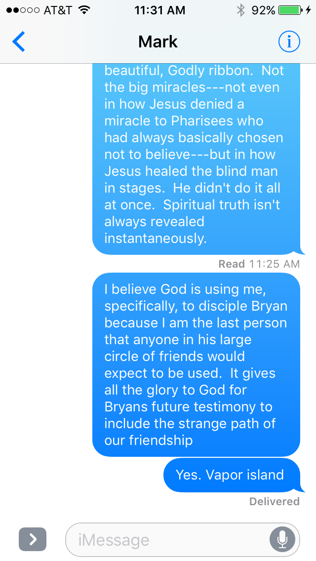 The circle isn’t completed, yet. However, I have witnessed huge growth over the past three weeks in an old friend. As I shared in my comment to him, only God could use the backdrop of our nine year friendship this way; His words. I have much more to write, but this is a summary of this moment.