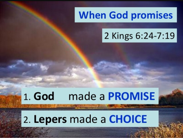 When I flipped to Micah a few days ago, the spiritual floodgates poured out. Today, I flipped to 2 Kings 7:2-19 and was hit with two more floodgates.