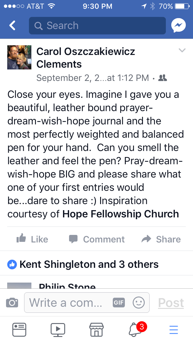 I just write an entire two full pages and deleted it by mistake. Father God, I am asking you to restore my thoughts to share them here.