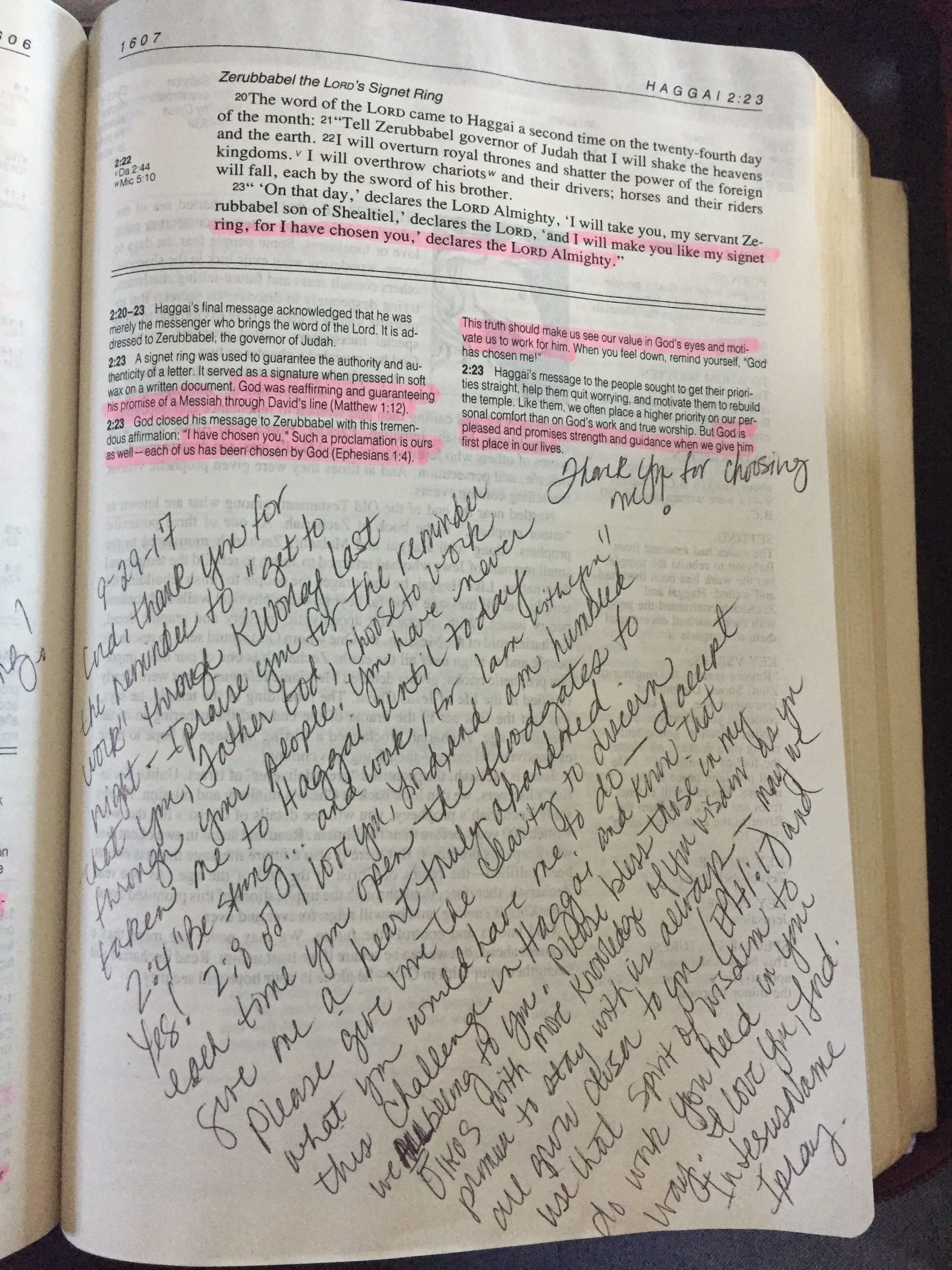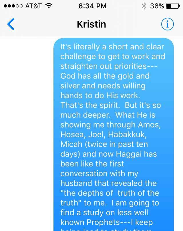 Haggai On September 29, 2017 By mygodroomIn Uncategorized More important to share Him with Kristen and Pam via text than to write it out pretty here. Share this: Click to share on X (Opens in new window) X Click to share on Facebook (Opens in new window) Facebook Like Loading... Related
