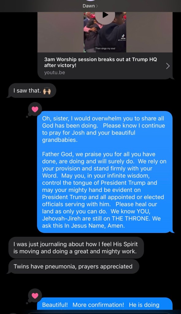 It felt like it could be an attack of the enemy when texts continued. This is a customer and acquaintance. I have shared many Godversations with her . Learning she was so despondent over an election, it felt different. Did she reach out to me with something deceitful in her heart?? Please reveal the truth. She lives with her actual birth mother and I thought it was a work or mom conflict. Lord, you know my heart, my prayer Make it clear how to engage in future, please.