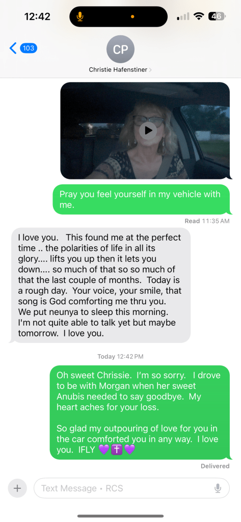 On 11/4/24, I drove to be with my daughter and her former partner when Anubis passed. It is not reasonable to hop on a plane to Rochester NY today, I know.