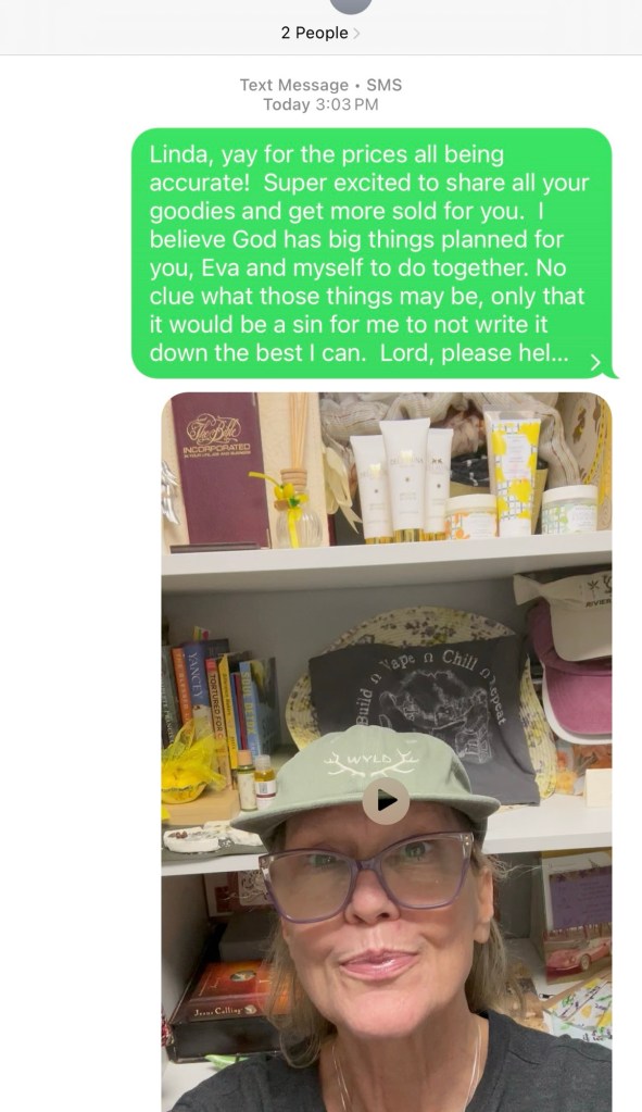 This was a simple text to Miss Eva this morning, sharing the products added from Miss Linda’s business. Her response was used mightily today! #WOJOY is my favorite new acronym. 💜✝️💜